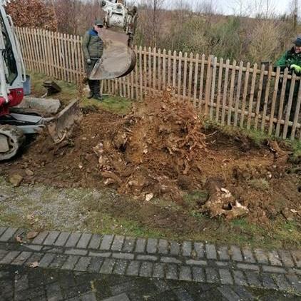 Der Baumstumpf mit den Wurzeln von der großen Eiche wurde entfernt. Durch den neu gewonnenen Platz wurden die einbetonierten Sitzbänke umgesetzt.