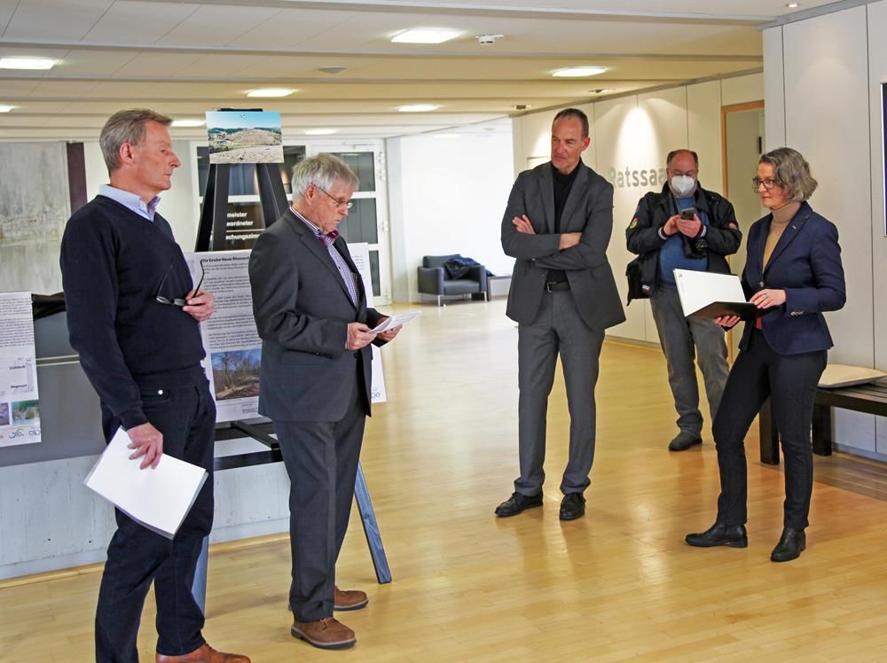 Erste Entwürfe der Infotexte und einer von Umweltskulptur konnten schon am Tag der Übergabe des Förderbescheids in der Ratsetage des Olper Rathauses besichtigt werden.
