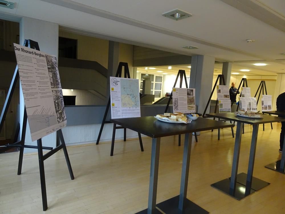 *Informationstafeln und Skulpturen sollen auf Bodendenkmäler, Bergbauspuren und die Montanvergangenheit von Olpe aufmerksam machen. Der Name „Gruben-Kunst-Weg“ ist dabei doppelsinnig, denn es soll einerseits auf Kunst hinweisen, die sich in den Skulpturen wiederfinden wird, anderseits findet sich ein Hinweis auf eine Besonderheit der Grube Rhonard, denn diese wurde seinerzeit durch ein aufwendiges Pumpwerk entwässert, ein unter Tage installiertes Wasserrad, das über Gestänge das Grundwasser hob und das Bergwerk somit befahrbar hielt – bergmännisch wird solch ein Pumpwerk „Kunst“ genannt. Damit der Weg attraktiv wird, sind ein Parkplatz, Spielgeräte und Sitzgelegenheiten geplant. [4]